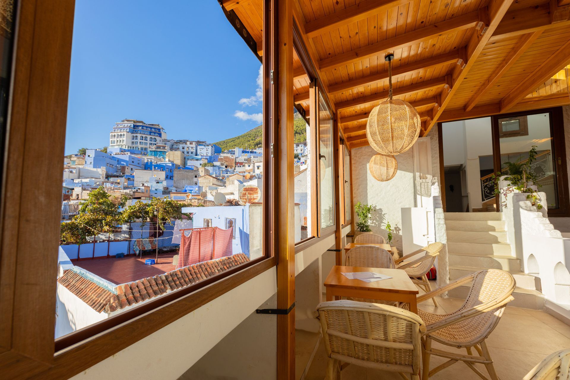 One of our greatest treasures is our collection of spectacular terraces, renowned for offering the best views in Chefchaouen. From our spacious roortop to the peaceful chill-out lounge at the highest level, guests can enjoy breathtaking panoramic scenery the blue-washed alleys, the vibrant medina, and the majestic Rif Mountains. Whether at sunrise or during the unforgettable Chefchaouen sunset, our terraces Invite you to slow down, breathe, and experience the city from its most magical vantage point.